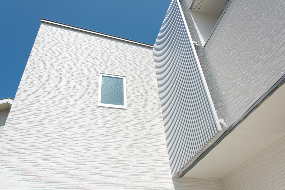 狭小地に対応できるようにと設計されたこのL型の家は、その形のおかげで洗練されたシャープな外観になっています。