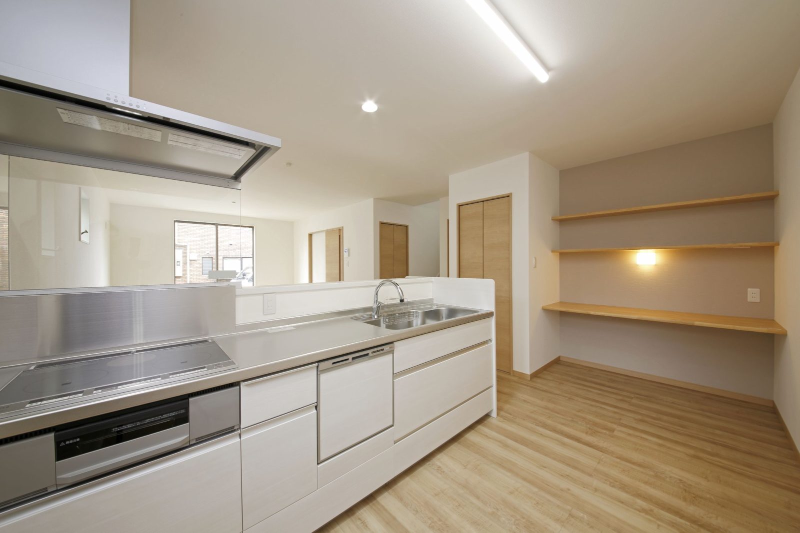 キッチン横に配置されたのが家事をしている親と同じ空間で学べる『スタディコーナー』。