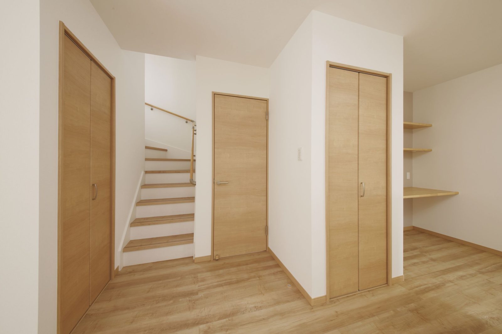 リビングダイニングは広々20帖、2階の3部屋は各6帖、また洗面室やリビングにもちょっとした収納があり