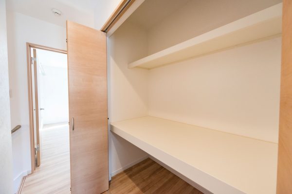 キッチン横にはストッカーとして利用できるパントリーを備えました。