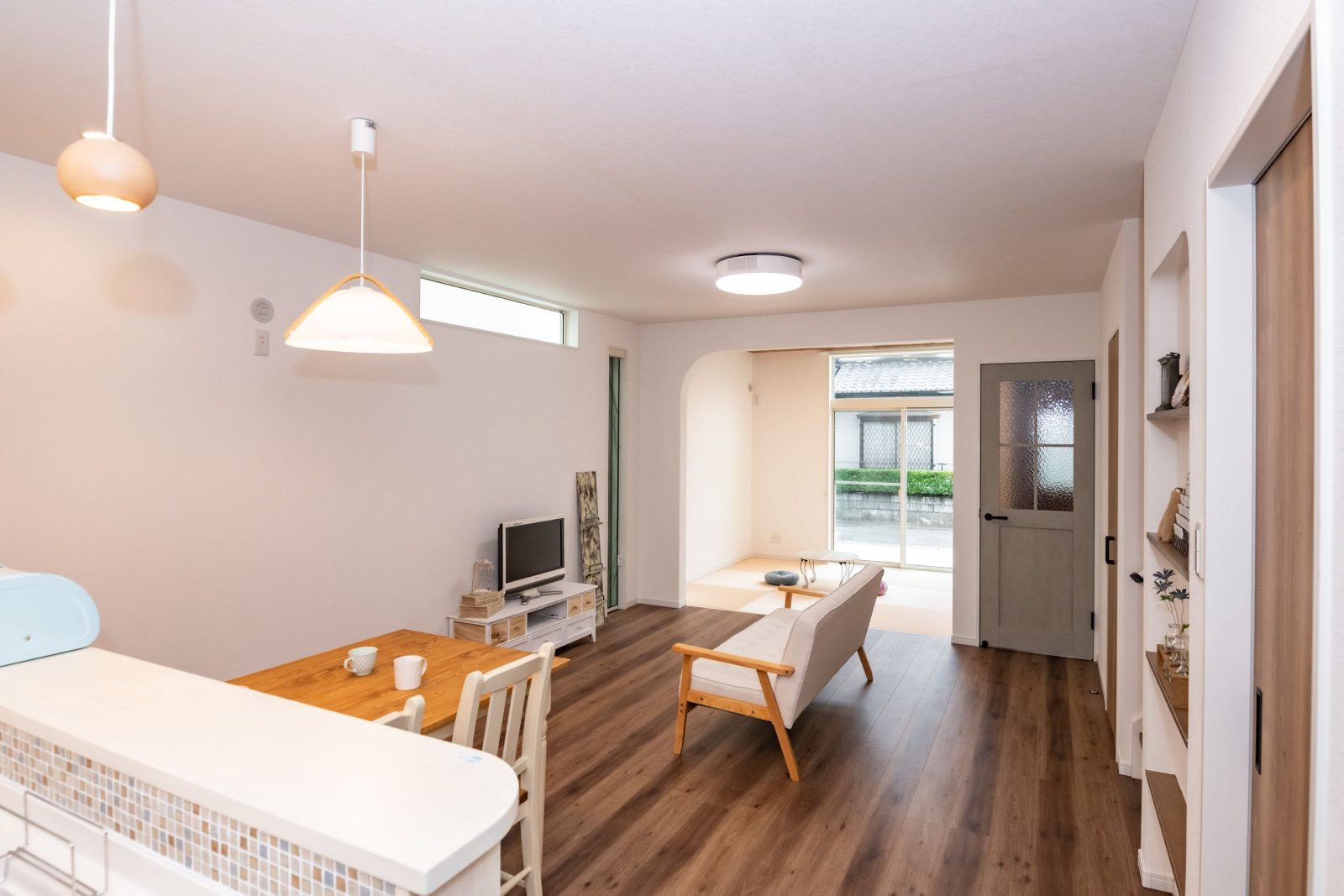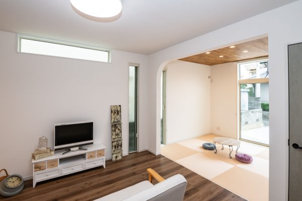 4.5帖のタタミコーナーは、入口の垂れ壁に曲線加工を取り入れました。