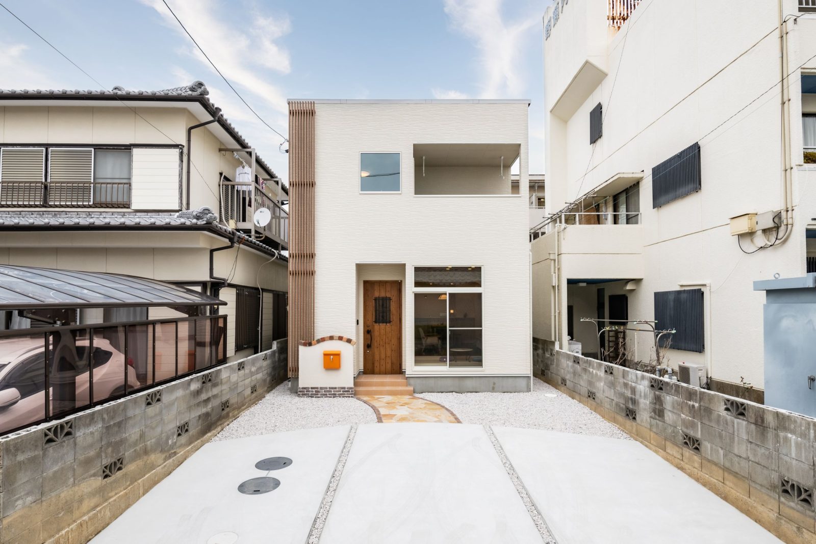 優しく迎えてくれる、広々とした駐車スペース。