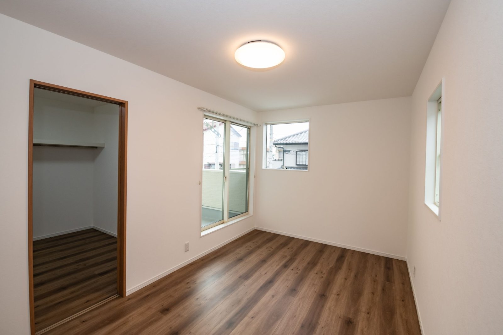 階段、2階洋室も木目やホワイト、ブラウンで統一し、