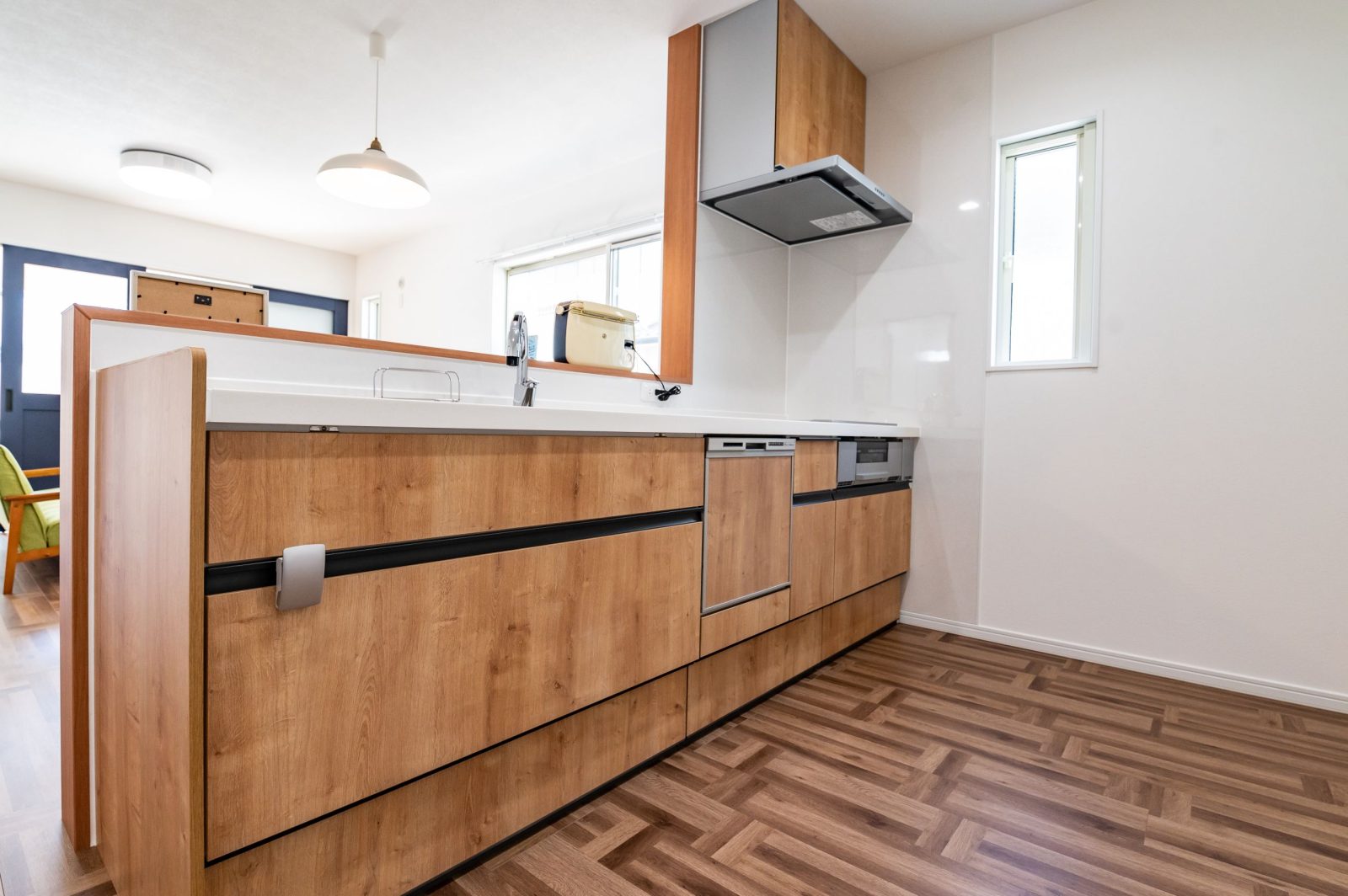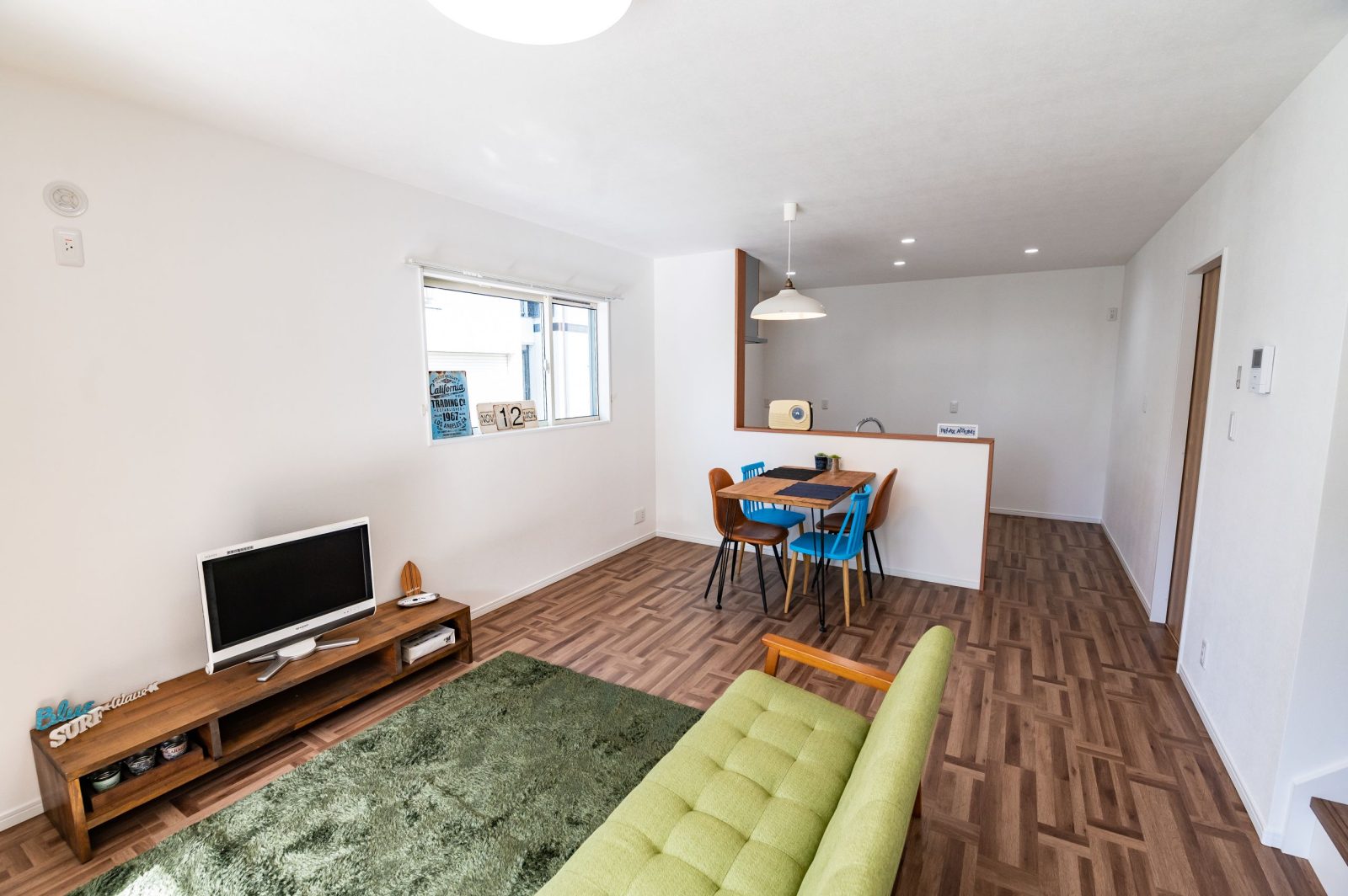 室内は木目とホワイトをバランスよく配置した配色にしており、
