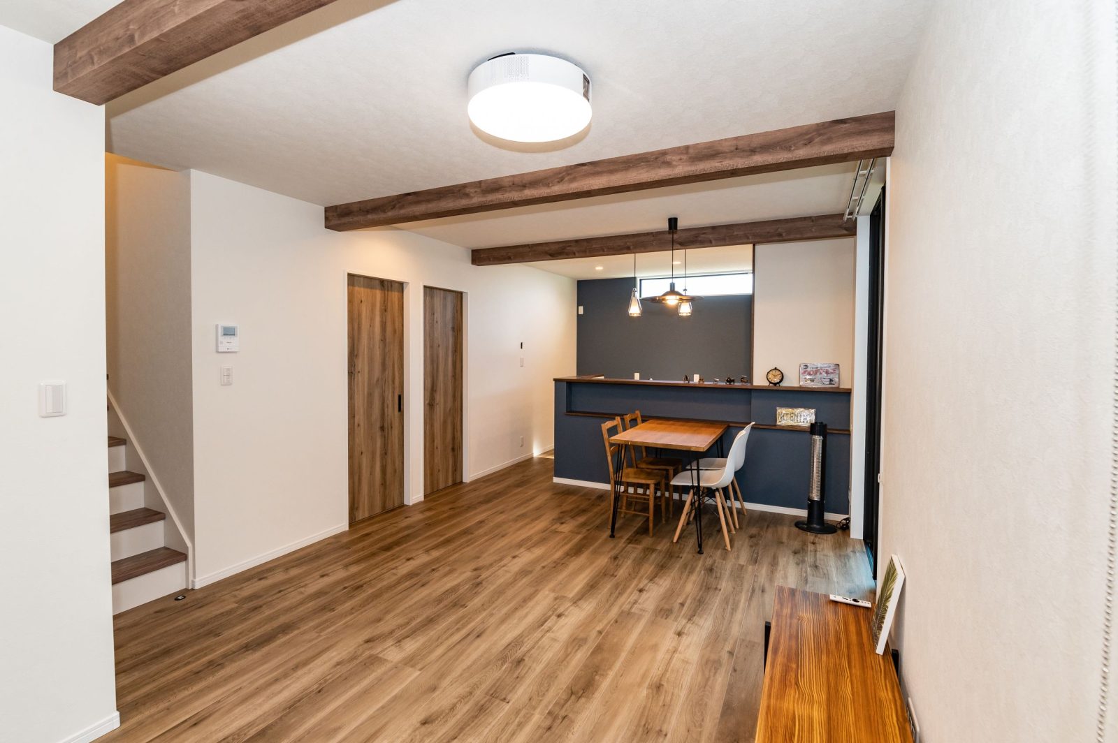見せ梁風の天井を採用しました。