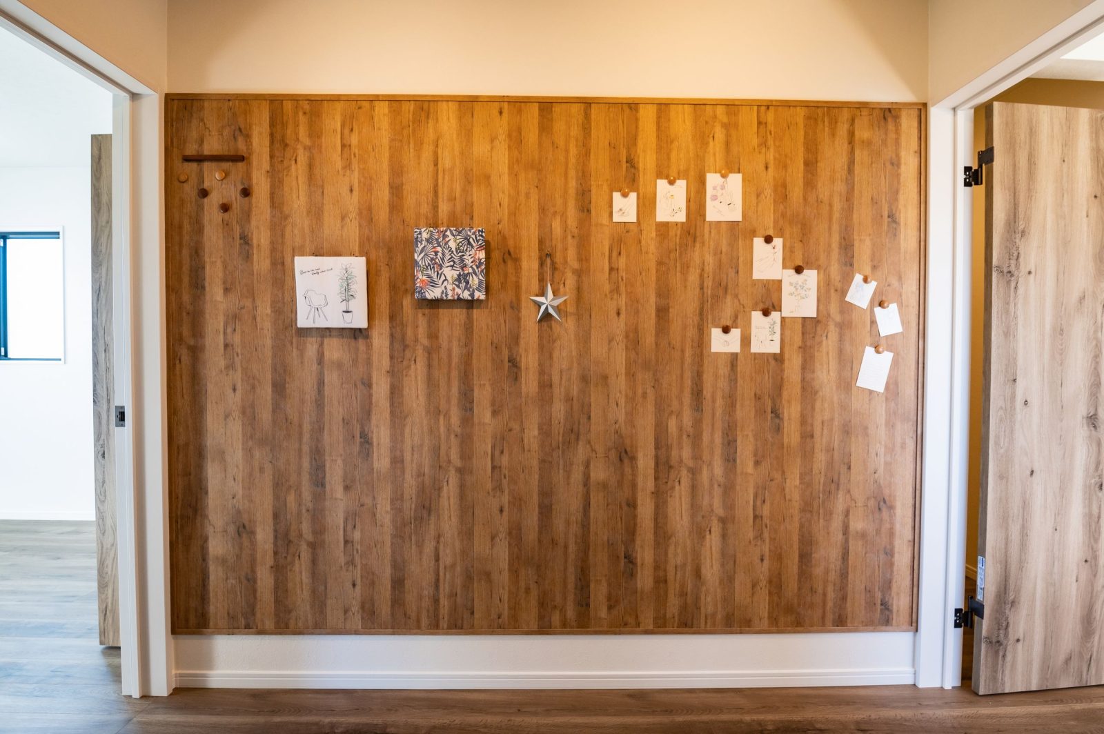 見た目はオシャレな木目の壁にしか見えない仕様です。