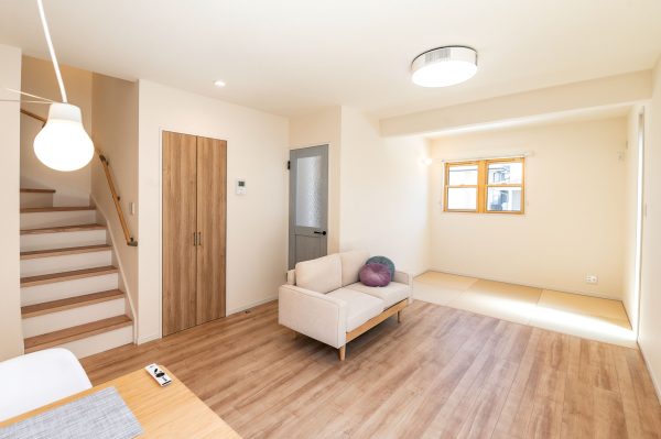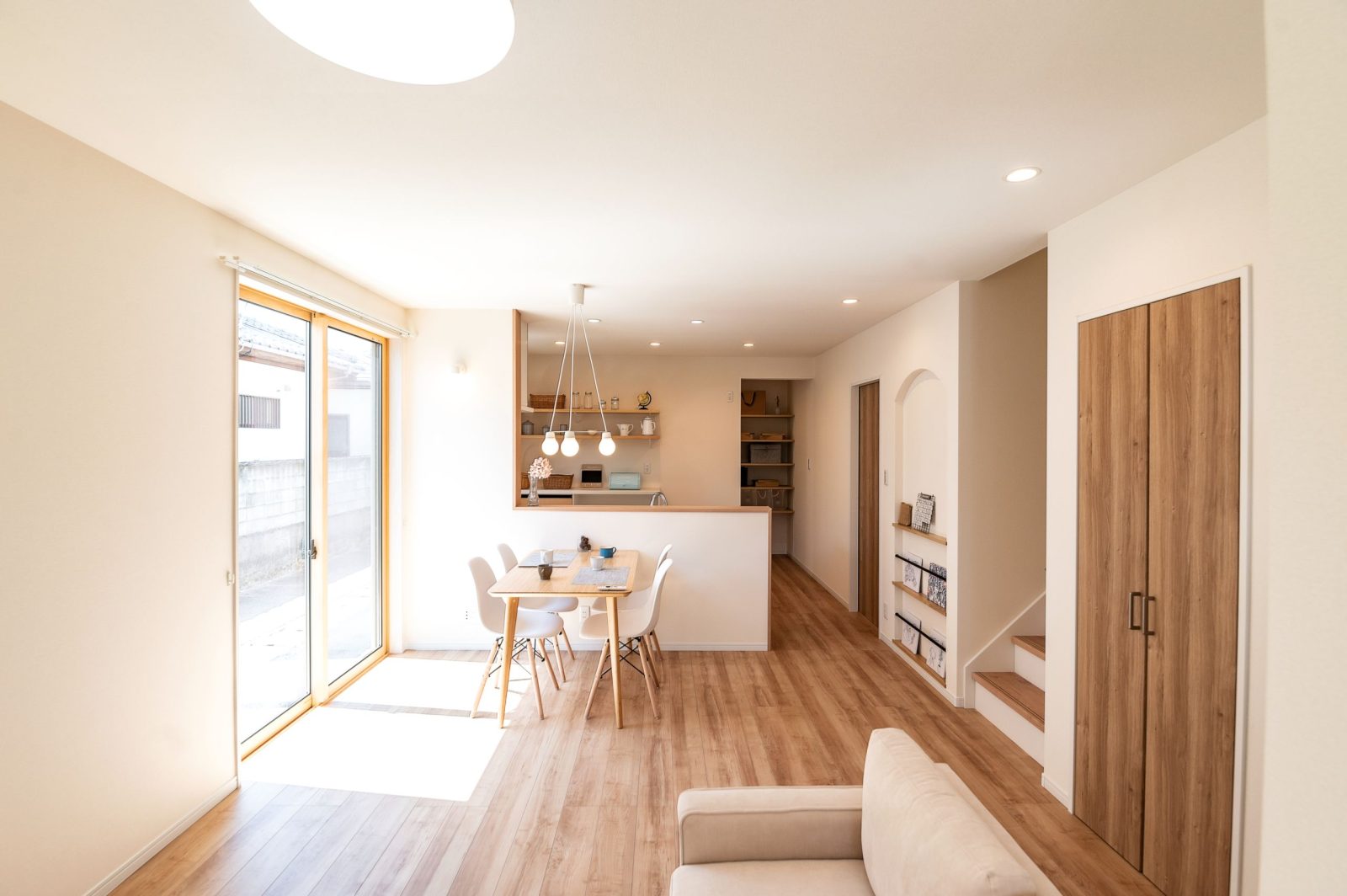 リビングも「ほっ」と落ち着ける、柔らかい内装デザインに仕上げました。