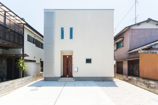 駐車場に施工した人工芝のラインがアクセントになっています。